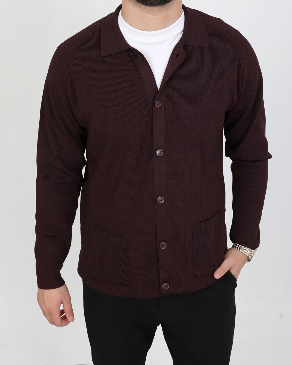 Zamansız bir şıklığı yansıtan bu bordo polo yaka triko kazak, sade ve modern tarzıyla her erkeğin gardırobunda yerini alıyor.