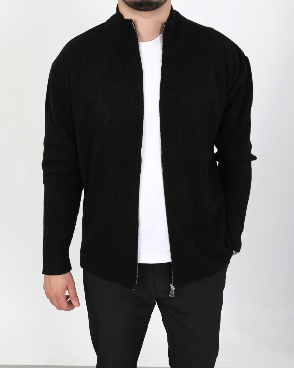 Erkek Siyah Fermuarlı Triko Hırka