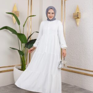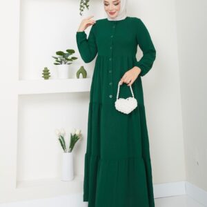 Düğme Detaylı mevlana Uzun Elbise