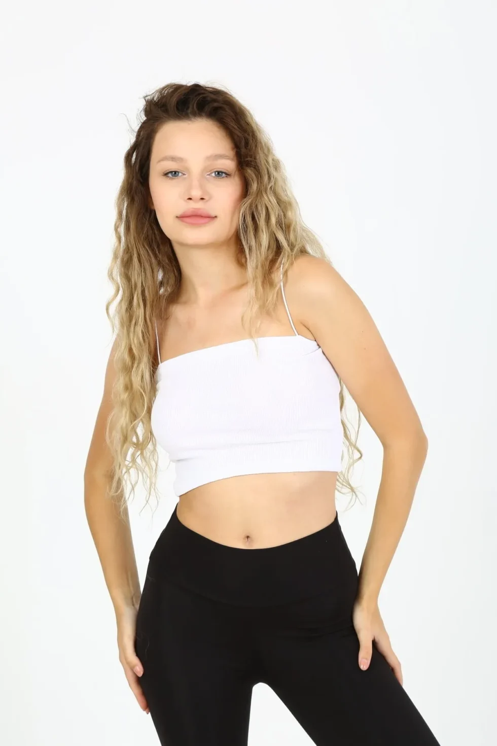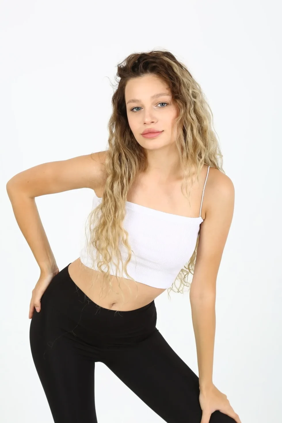 Beyaz Fitilli Kumaş Askılı Crop Büstiyer