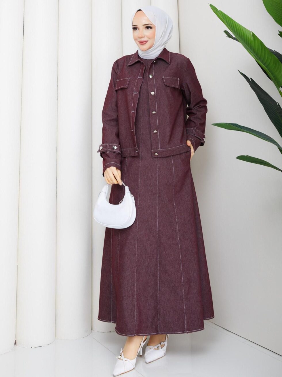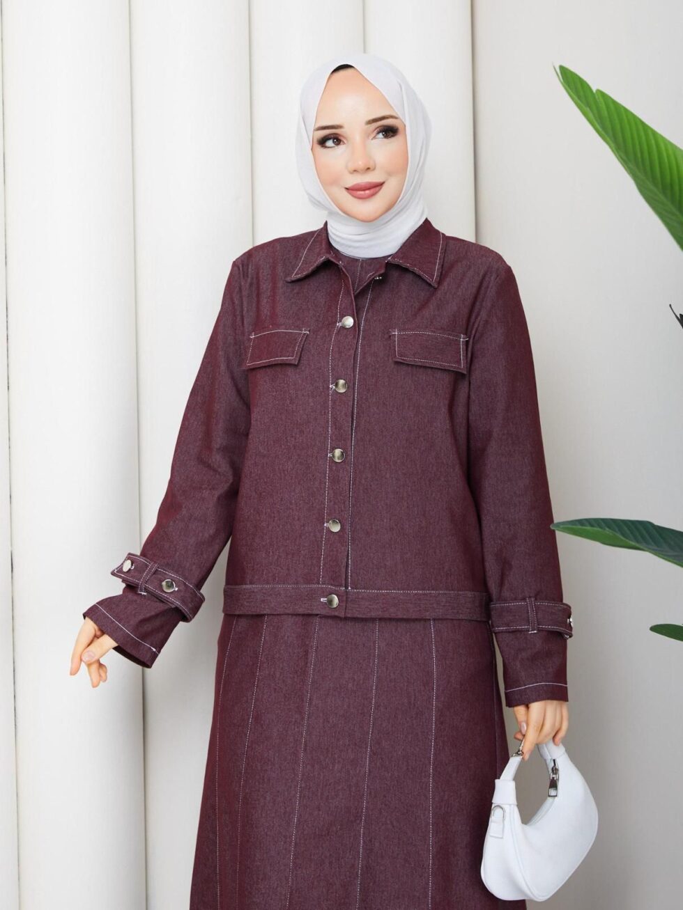 Modern çizgilerle tasarlanmış bu şık tesettür takım, güçlü ve zarif bir görünüm sunar. Ceket ve elbiseden oluşan kombin, sade şıklığı dikiş detaylarıyla ön plana çıkarır. Günlük kullanımdan özel davetlere kadar geniş bir kullanım alanına sahiptir.