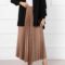 Genç ve dinamik tarzınızı yansıtan, vizon rengindeki düz desenli ince piliseli etek ile gün boyu rahatlığınızdan ödün vermeyin.