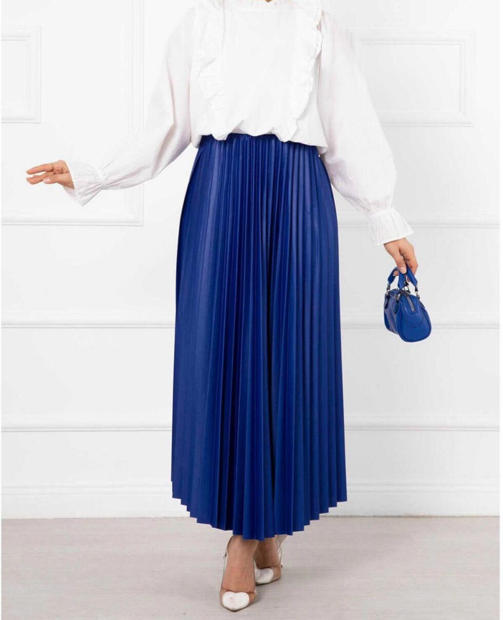Genç ve dinamik tarzınızı yansıtan, vizon rengindeki düz desenli ince piliseli etek ile gün boyu rahatlığınızdan ödün vermeyin.