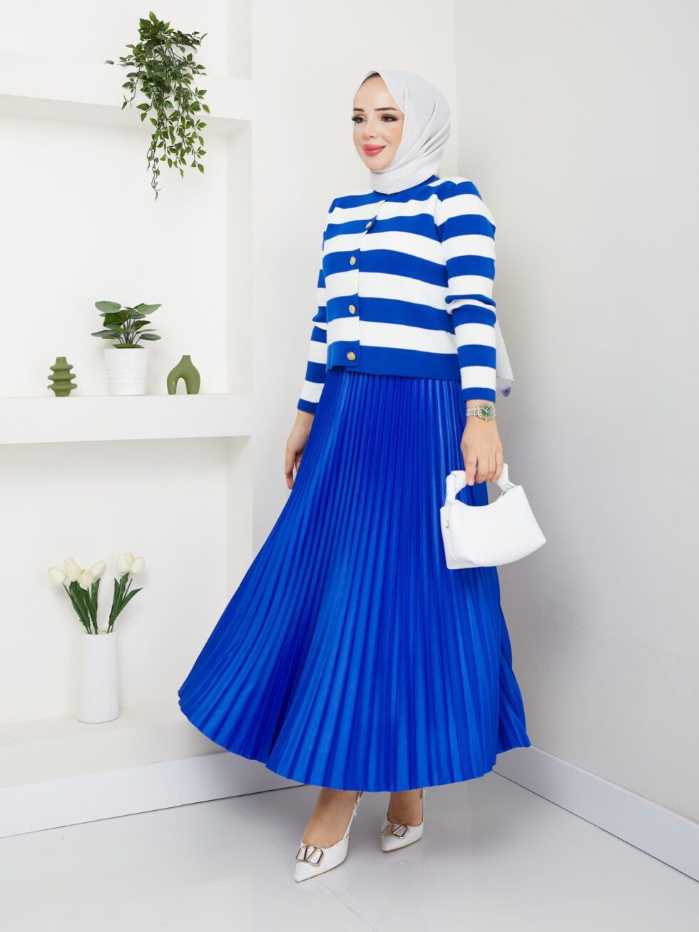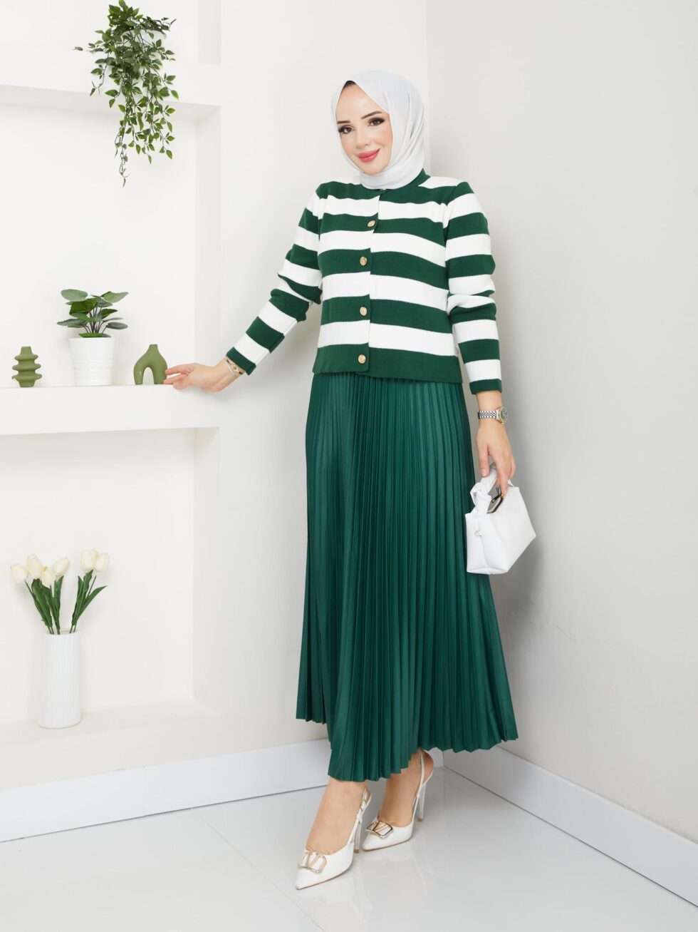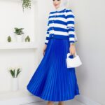 Etekli çizgili triko takım