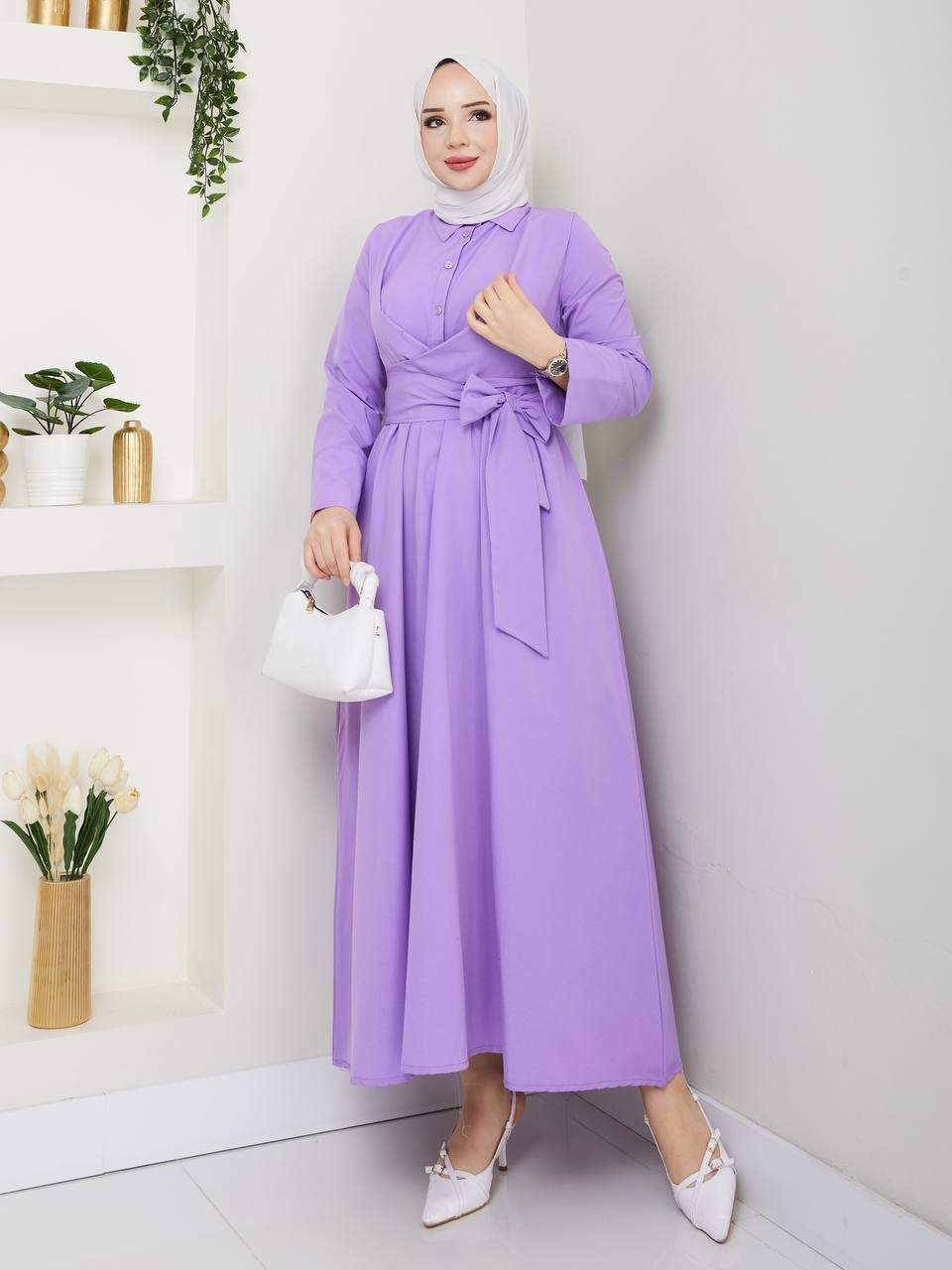 Şıklığı ve rahatlığı bir arada sunan bu lila tonlarındaki uzun elbise, günlük kullanımda ve özel davetlerde stilinizi ön plana çıkarır. Yumuşak dokulu kumaşı sayesinde gün boyu konfor sağlarken, bel kısmındaki bağlama detayı vücut hatlarını zarif bir şekilde vurgular.