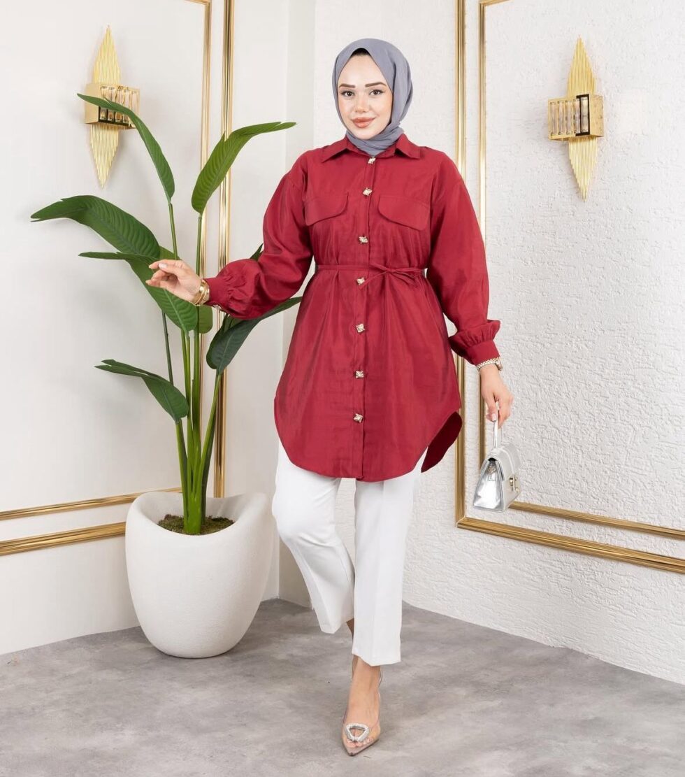 rahat bir kumaş yapısını sahip olan açelya gömlegimiz belinde kuşagı ile birlike gelmekte olup istenilen ölçüde ayarlanılabilir.