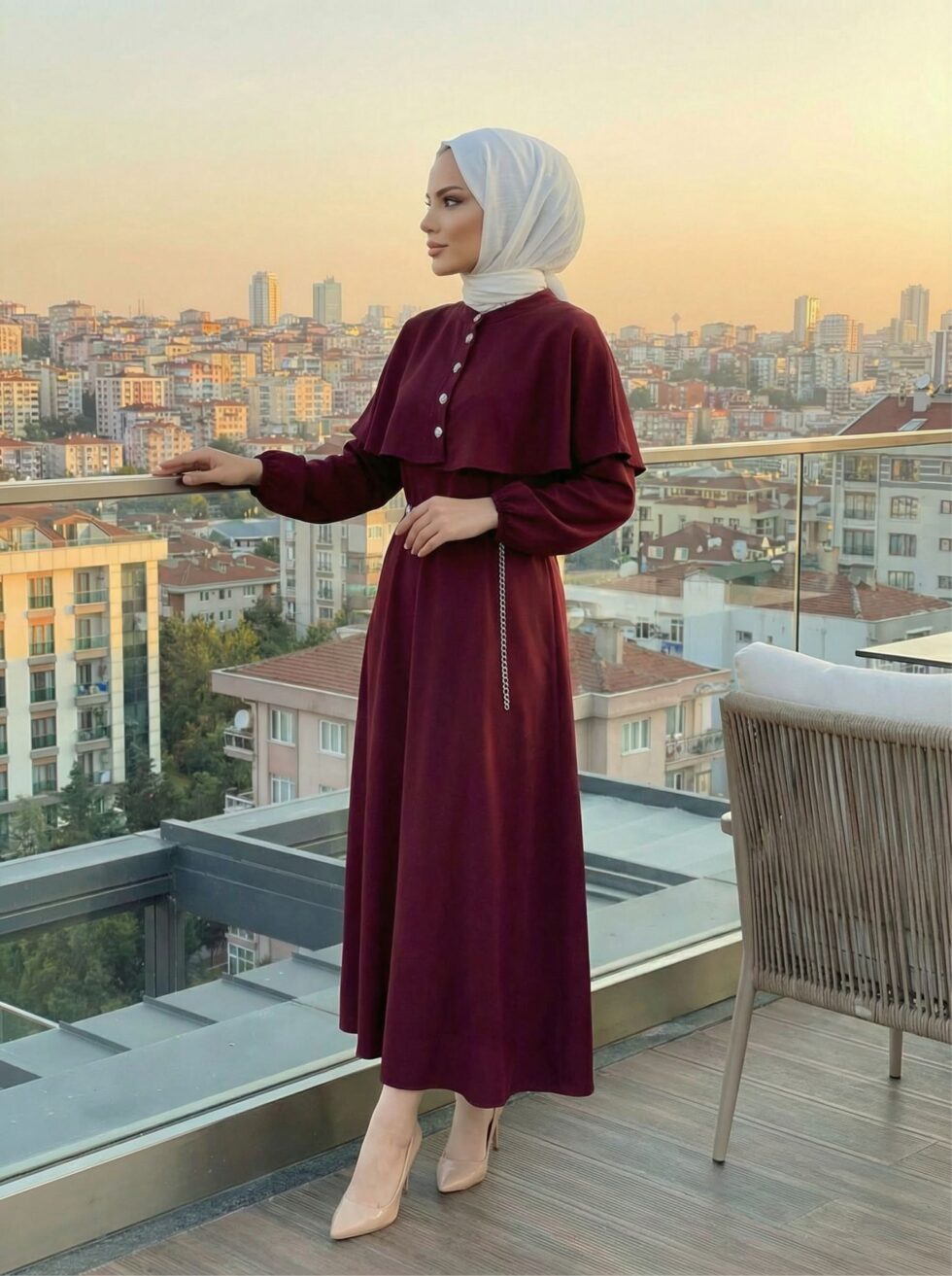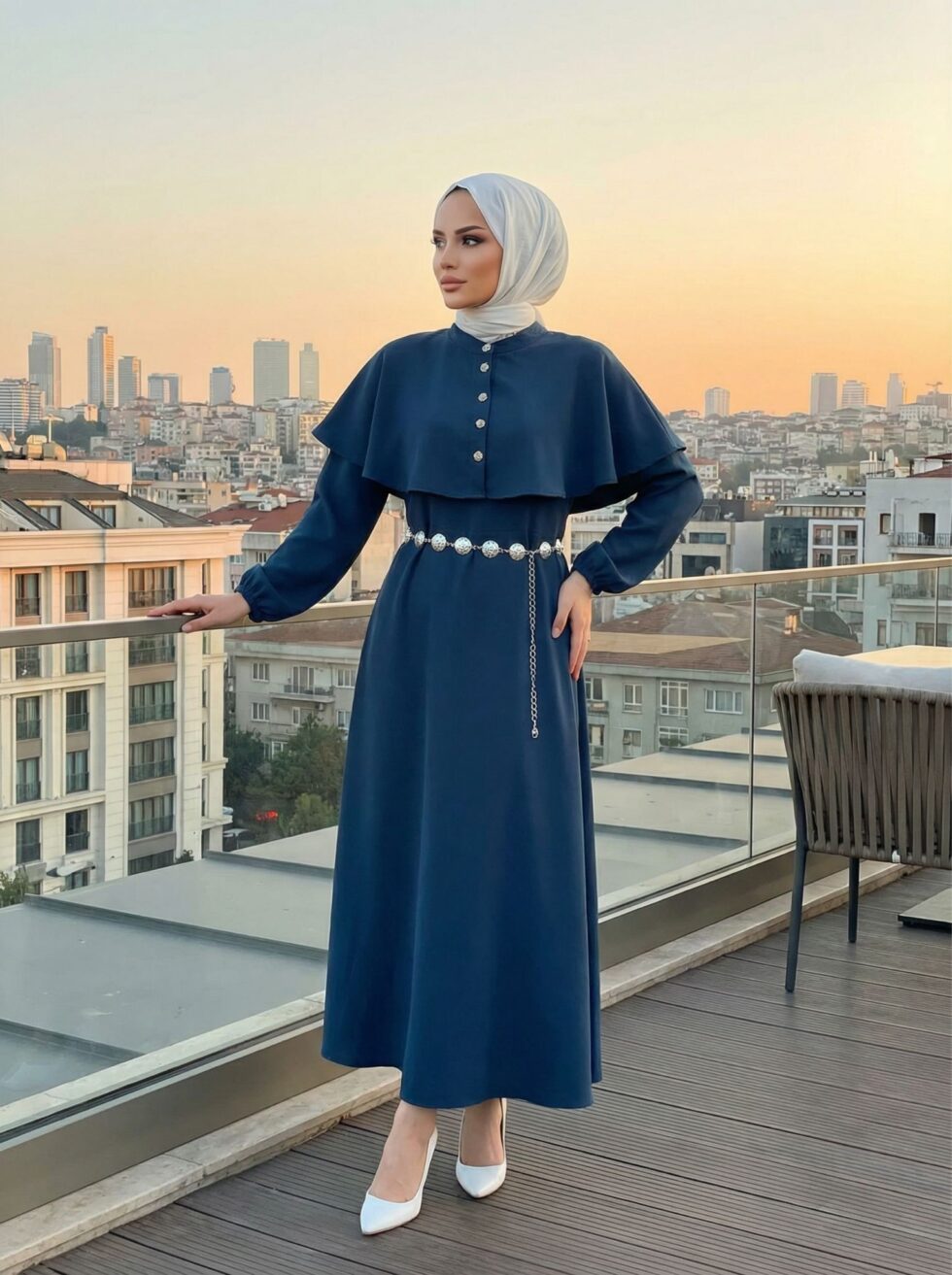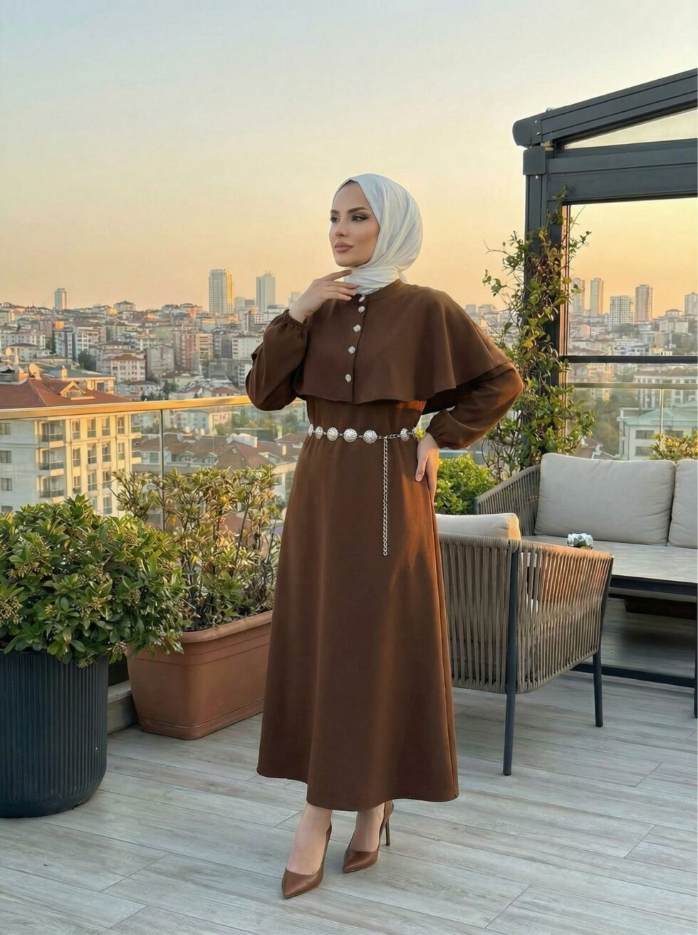 Pelerin Detaylı Elbise