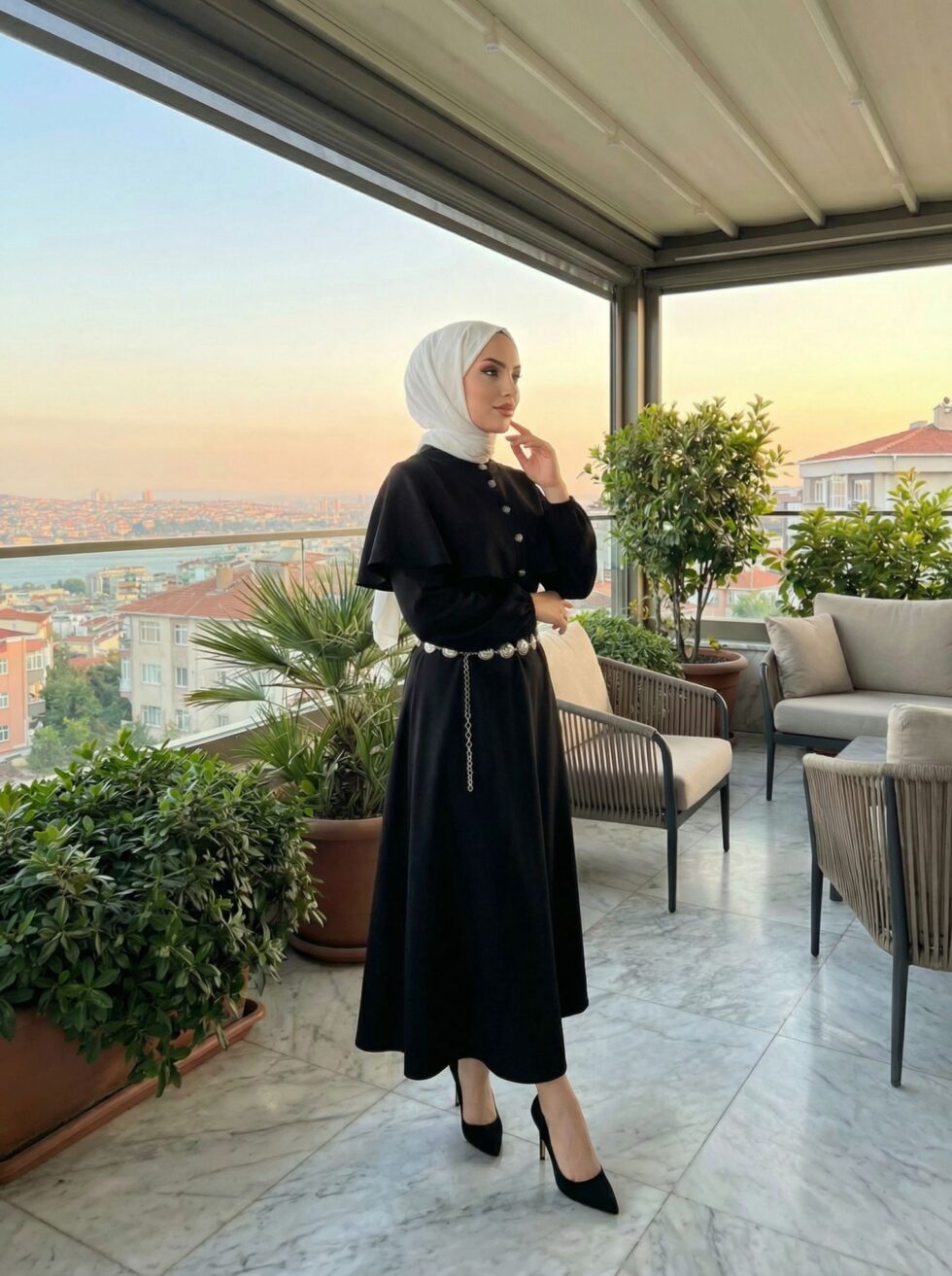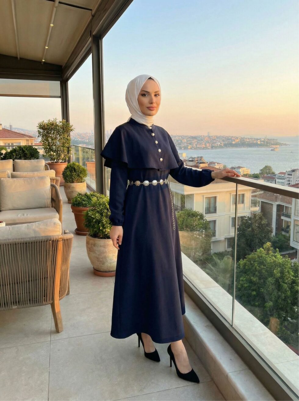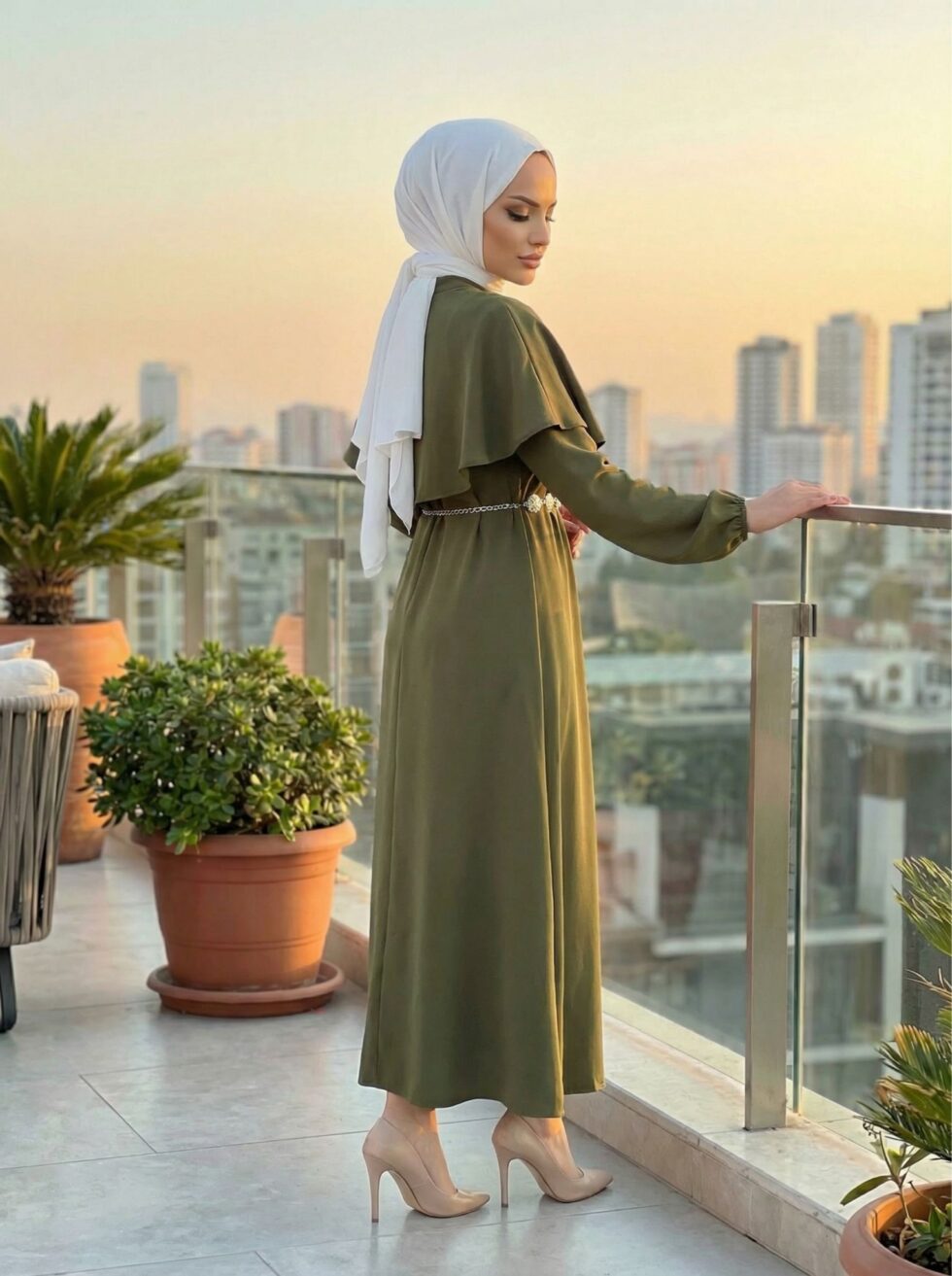 Pelerin Detaylı Elbise