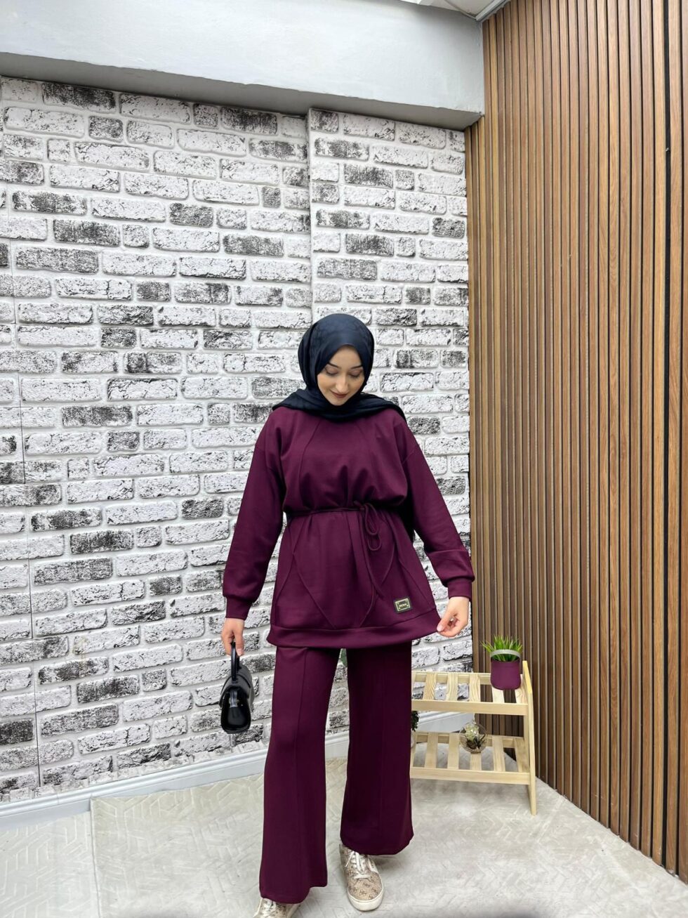Rahatlığı ve modern şıklığı bir arada sunan bu takım, belden bağlamalı tunik ve bol paça pantolondan oluşmaktadır. Konforlu kalıbı sayesinde gün boyu özgür hareket imkânı sağlarken, sade ve zarif duruşuyla günlük kullanıma uyum sağlar.